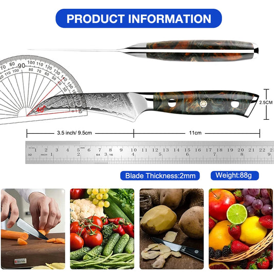 Peeling Paring Knife 3.5" Damascus VG10 Super Steel